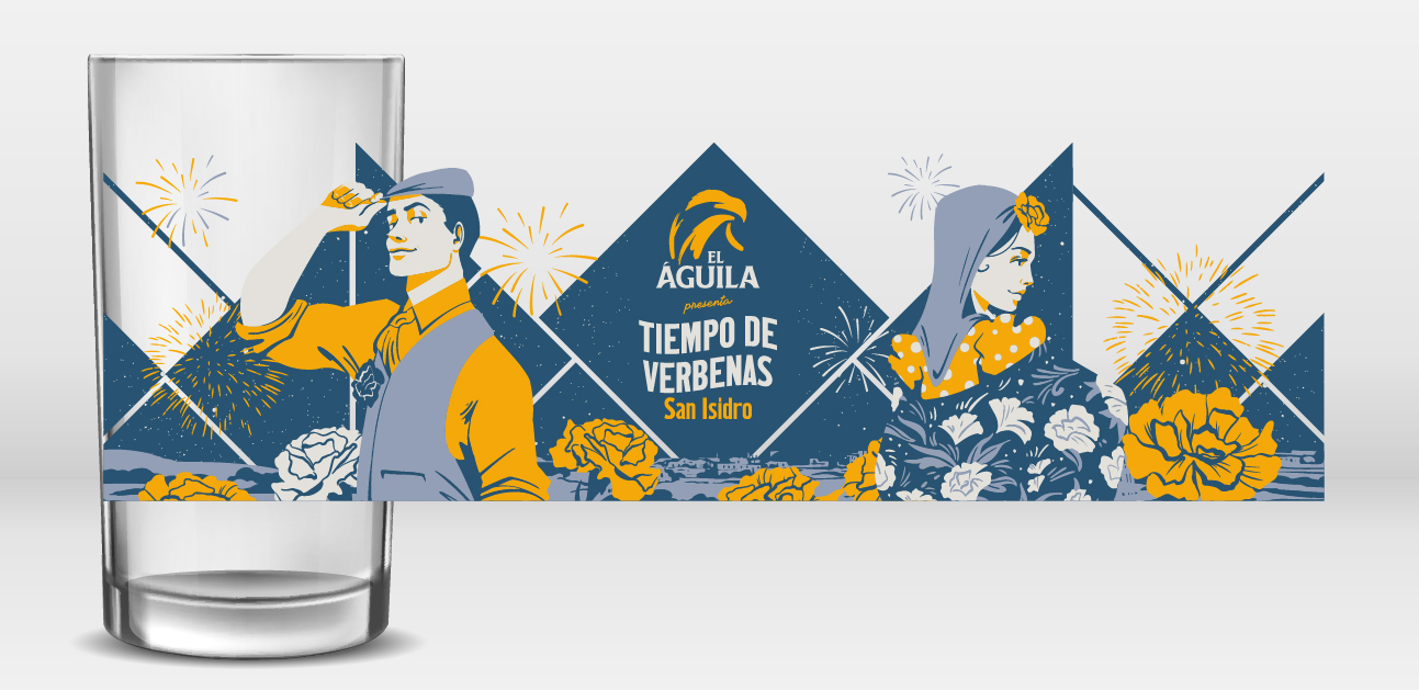 El encargo consistía en crear cuatro ilustraciones que captaran el espíritu festivo y castizo de esta tradicional celebración madrileña. Estos diseños se utilizaron en diversos soportes, desde la decoración de escaparates hasta carteles promocionales, incluyendo una edición especial de vasos conmemorativos.El objetivo era aportar una estética fresca y contemporánea sin perder de vista las raíces populares de la fiesta, conectando la imagen de la marca con la identidad cultural de Madrid.