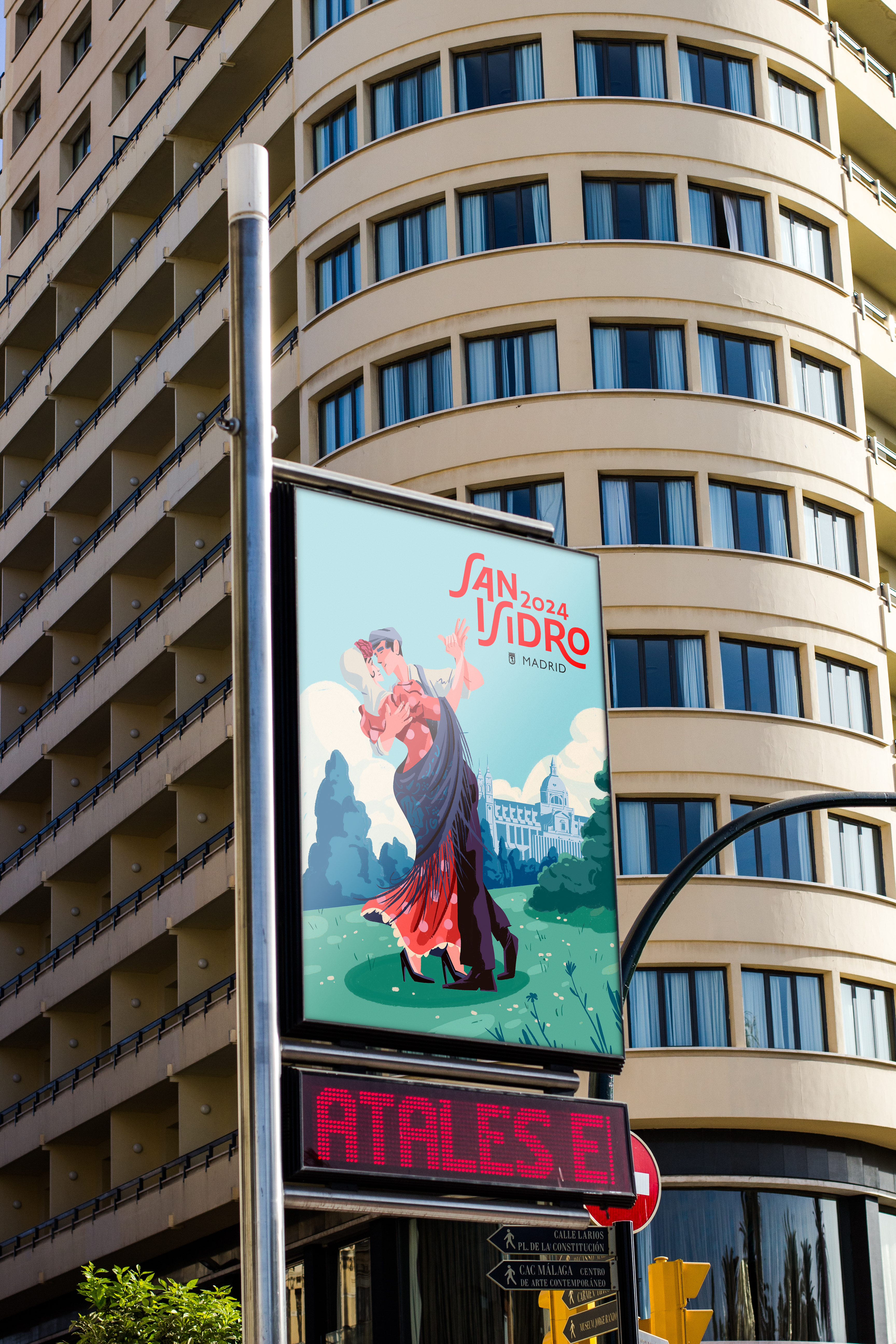 Ilustración para el cartel de San Isidro 2024: Este diseño captura la esencia de la festividad madrileña a través de una representación vibrante y dinámica.
